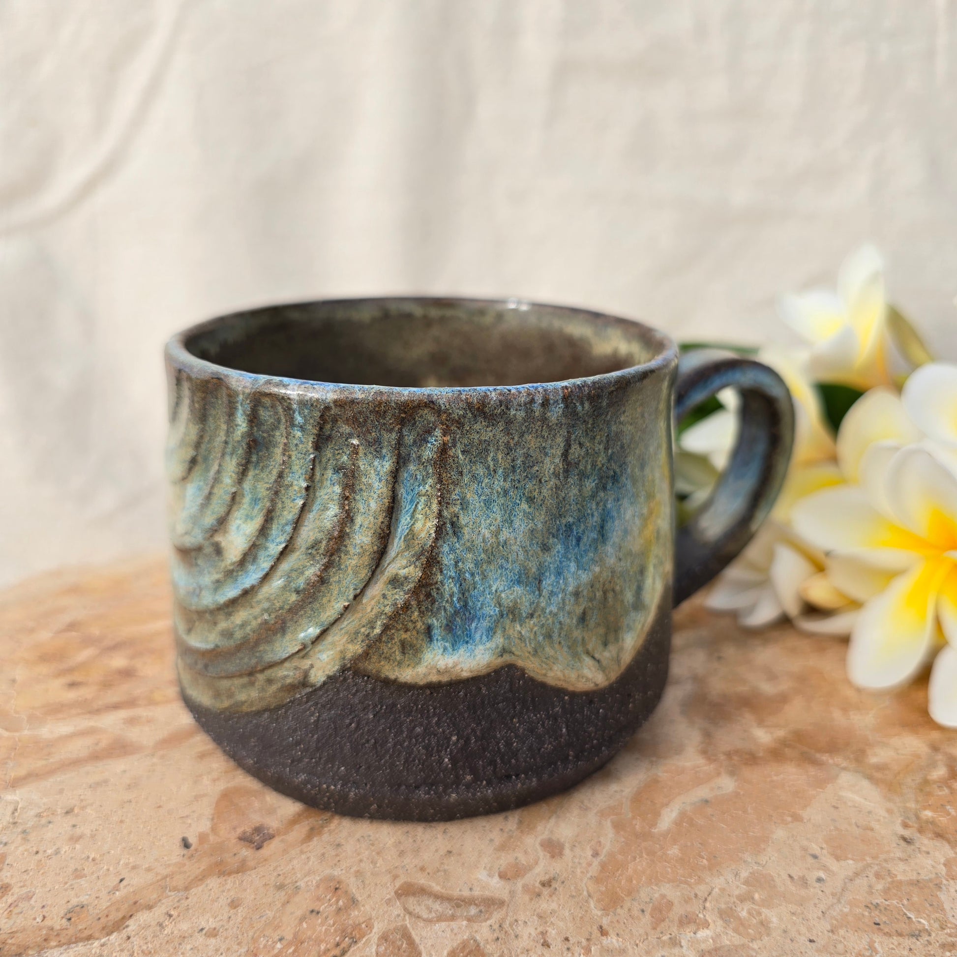 Each mug is creatively shaped on the pottery wheel. They are intricately hand carved and intentionally glazed drawing inspiration from the Eyre Peninsula coastline.