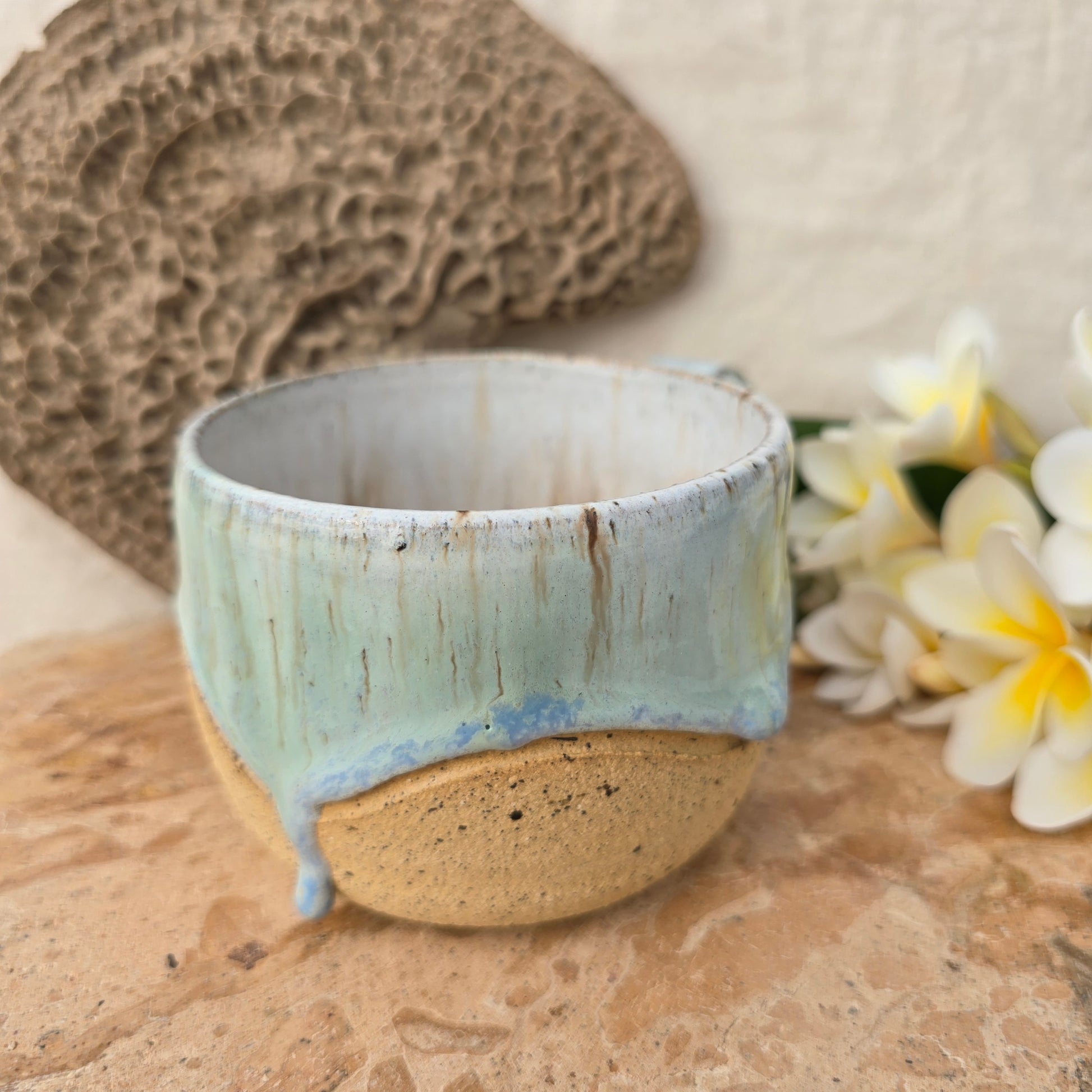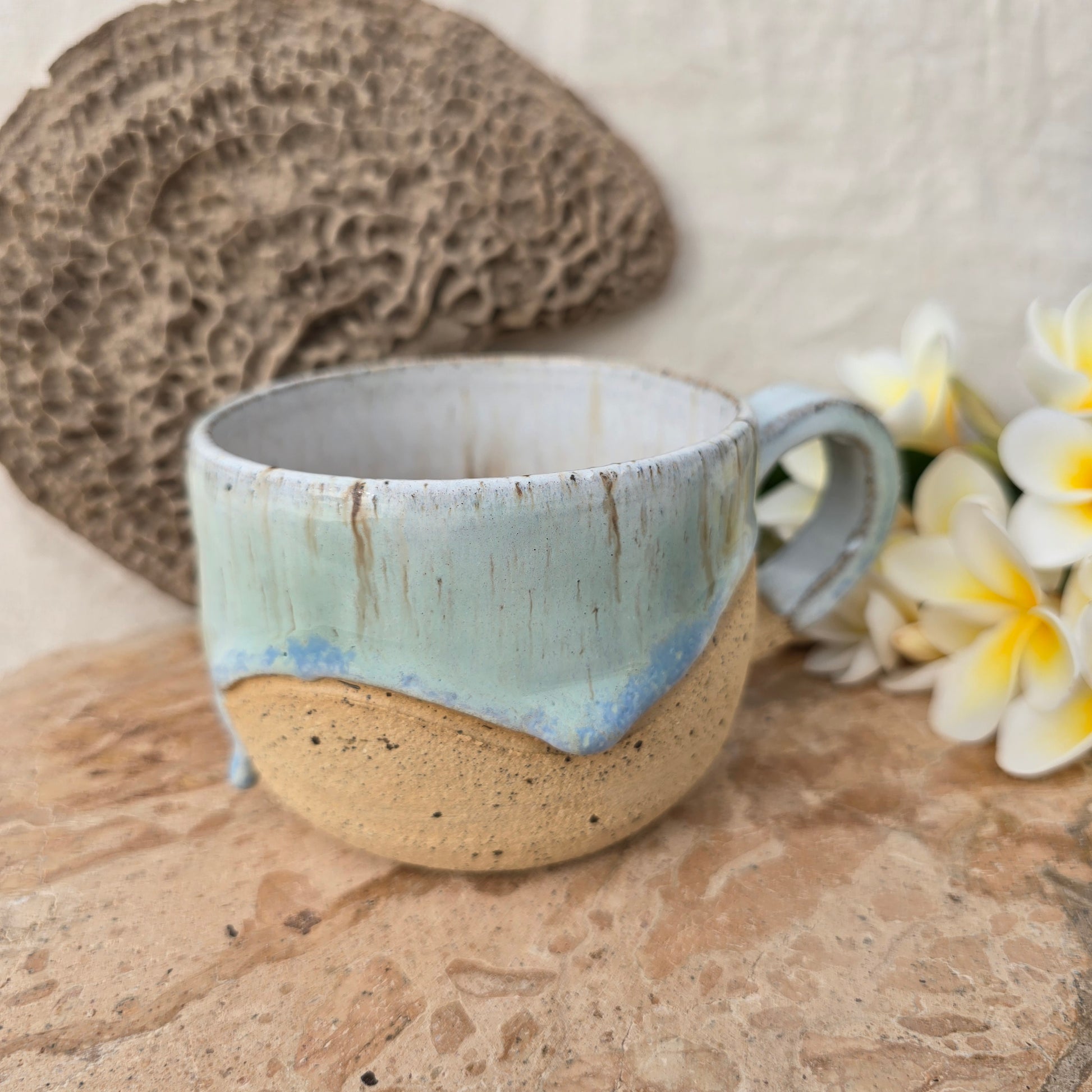 Each mug is creatively shaped on the pottery wheel. They are intricately hand carved and intentionally glazed drawing inspiration from the Eyre Peninsula coastline.